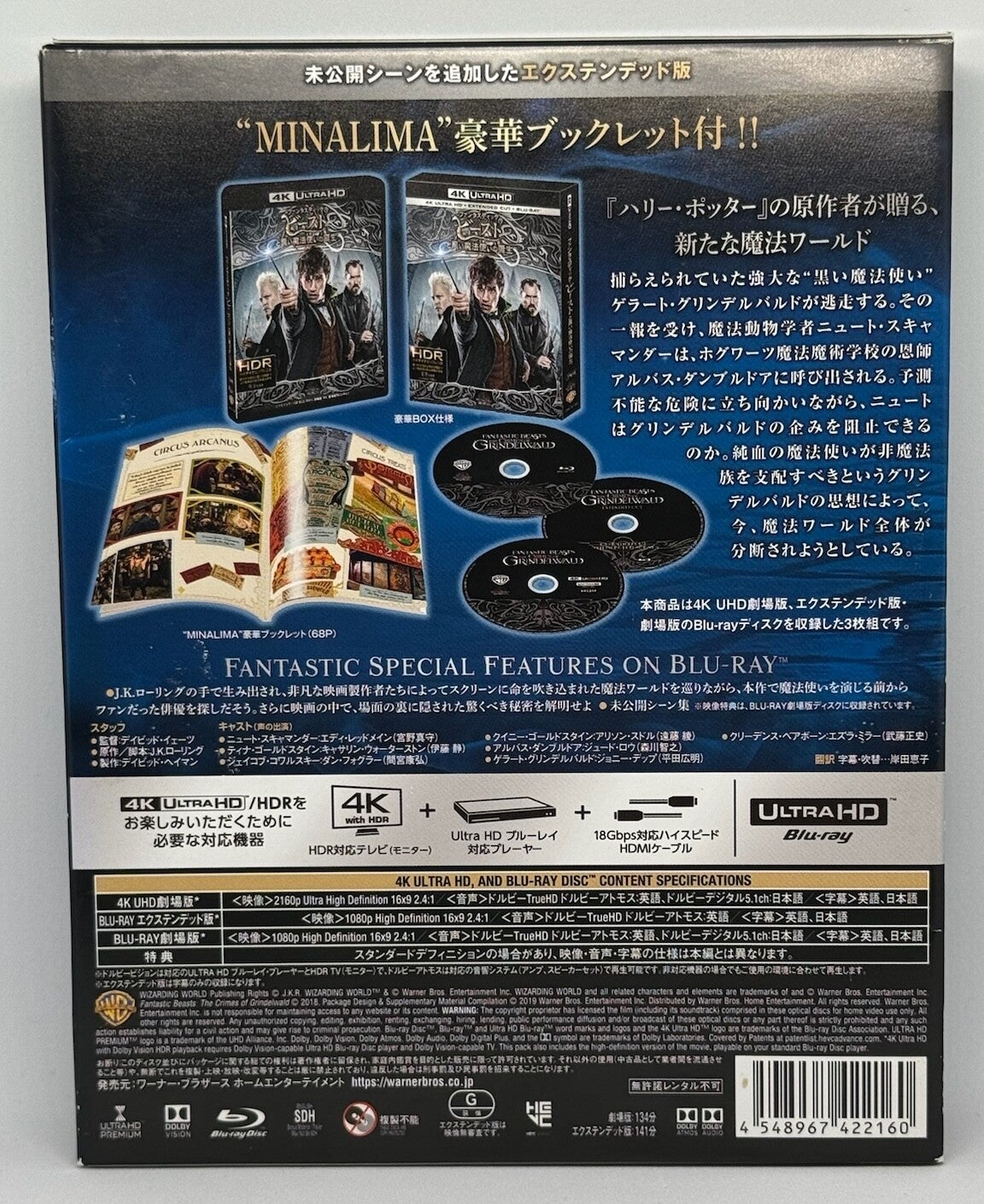 The edition includes three discs — 4K Ultra HD, Extended Cut Blu-ray, and Theatrical Cut Blu-ray — all presented in premium packaging with vibrant foil artwork. It’s one of the most desirable Japanese releases from the Wizarding World series, originally priced at ¥7,990.