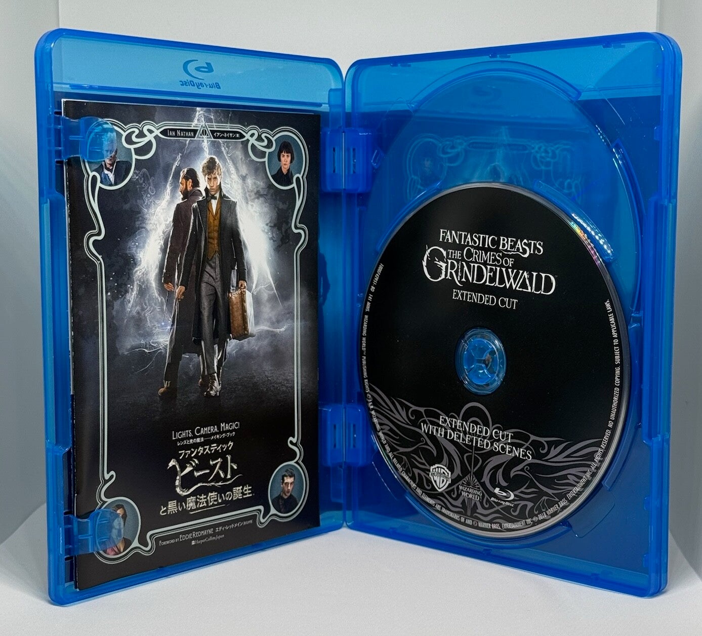 Inside the box are three Blu-ray discs containing the Theatrical Cut, Extended Cut, and a Japan-original bonus disc packed with special features. The set also includes a complete set of premium character cards and a collectible silver envelope, making it one of the most desirable versions for Wizarding World collectors.