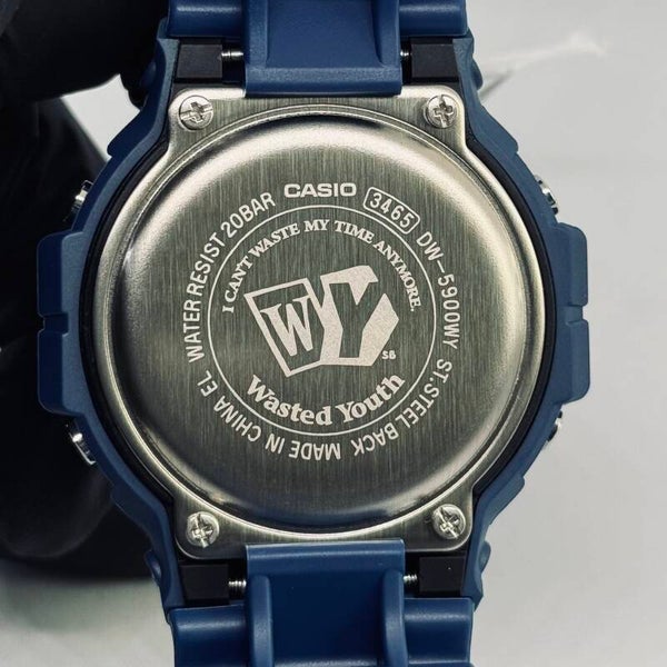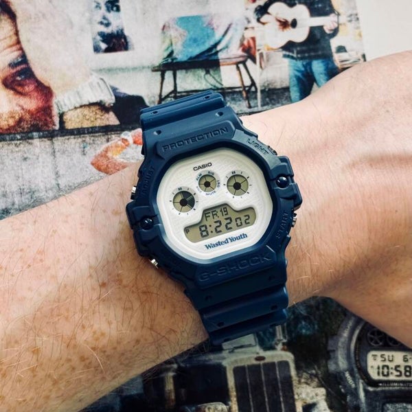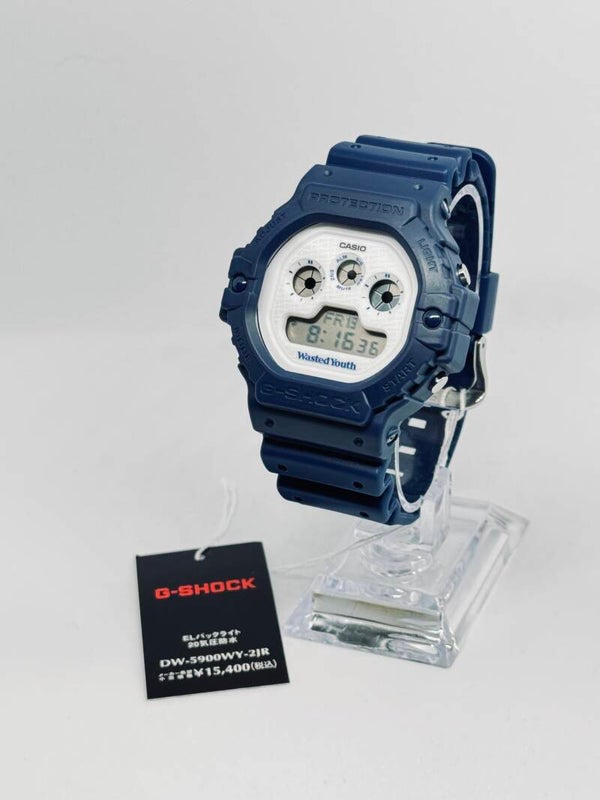 The DW-5900WY-2 “Walter” is a bold collaboration between Casio G-Shock and Tokyo streetwear label Wasted Youth, blending skate culture aesthetics with the iconic triple-eye DW-5900 design. A distinctive modern special edition with strong crossover appeal among G-Shock collectors and streetwear fans.